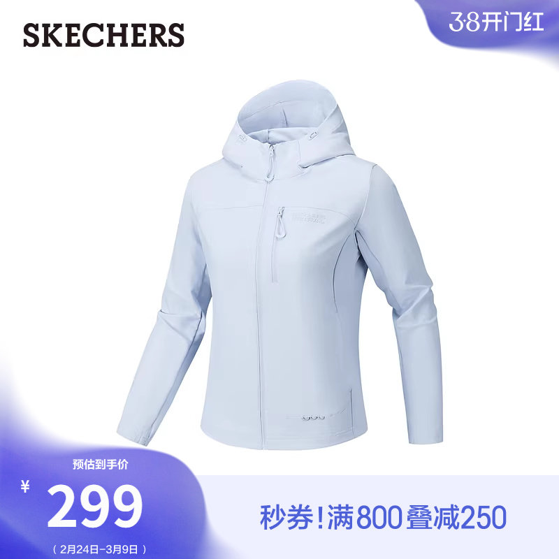 斯凯奇2026新款女款连帽衫外套修身显瘦简约百搭休闲运动上衣夹克