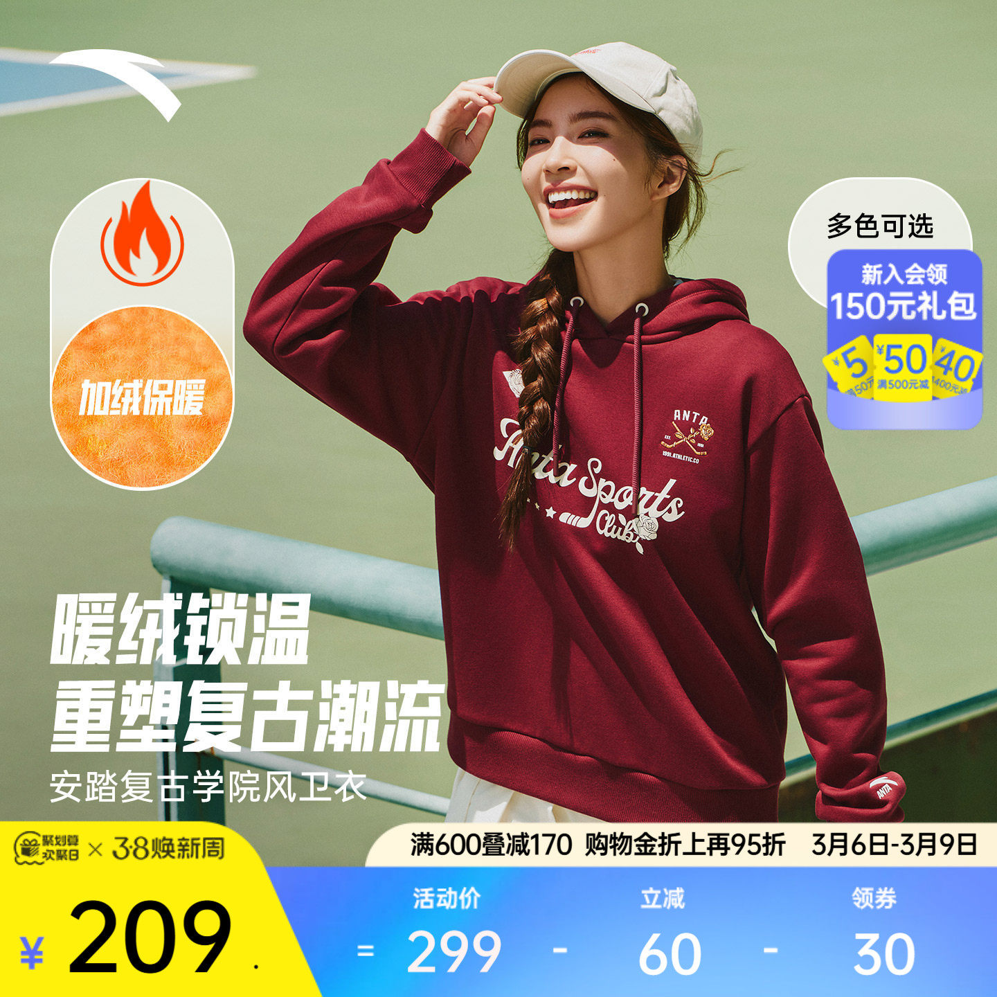 - 加绒加厚连帽卫衣女