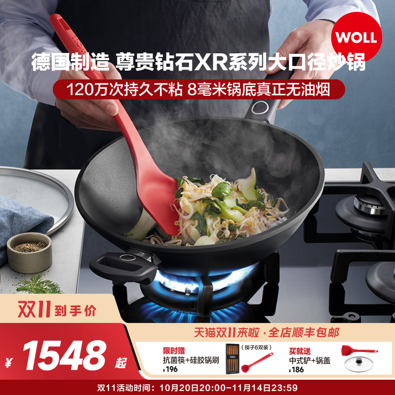 Woll新品德国进口炒锅尊贵钻石XR系列燃气灶家用无油烟不粘锅炒锅