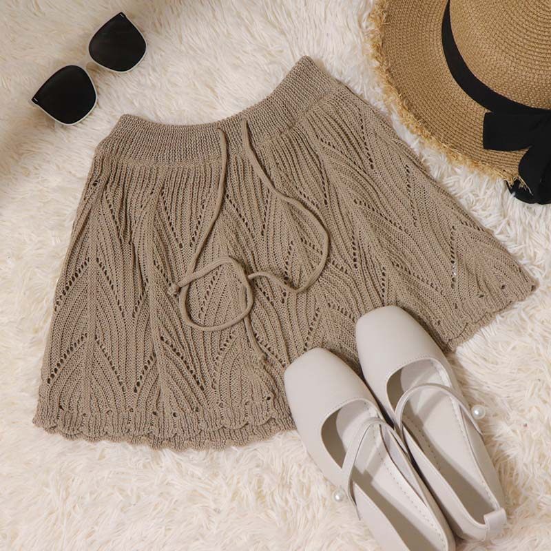 新款针织镂空绑带半身裙沙滩温泉比基尼泳衣裙运动短裙女叠穿屁帘