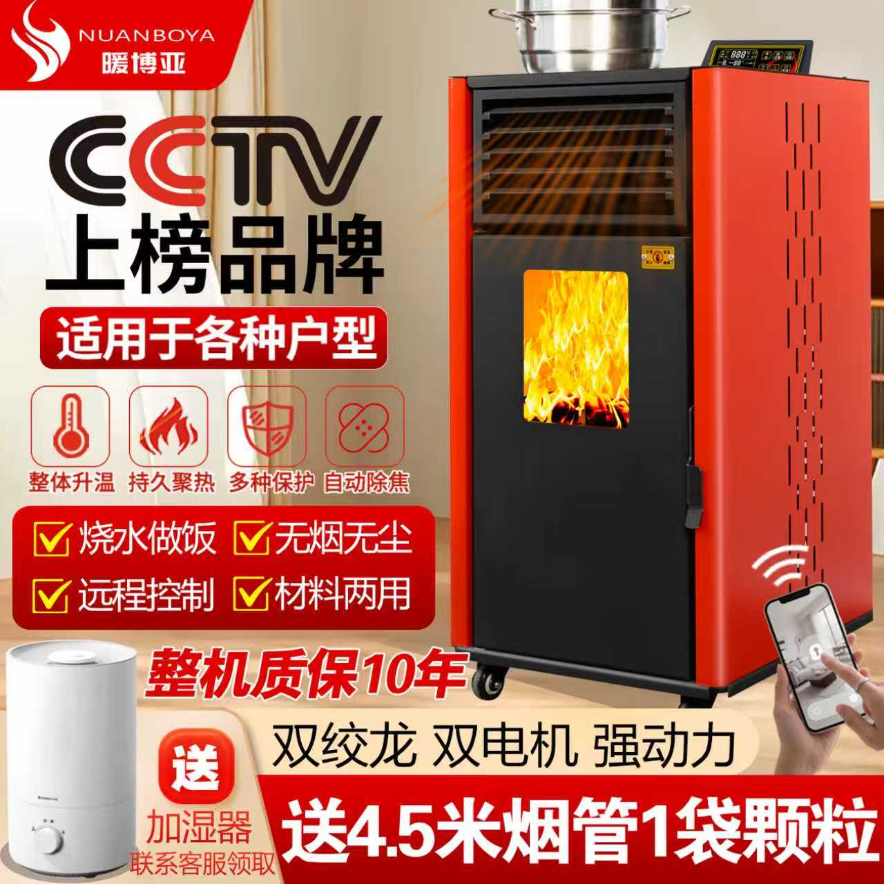 冬季新型生物质颗粒采暖炉家用室内无烟智能环保烧柴火两用取暖炉