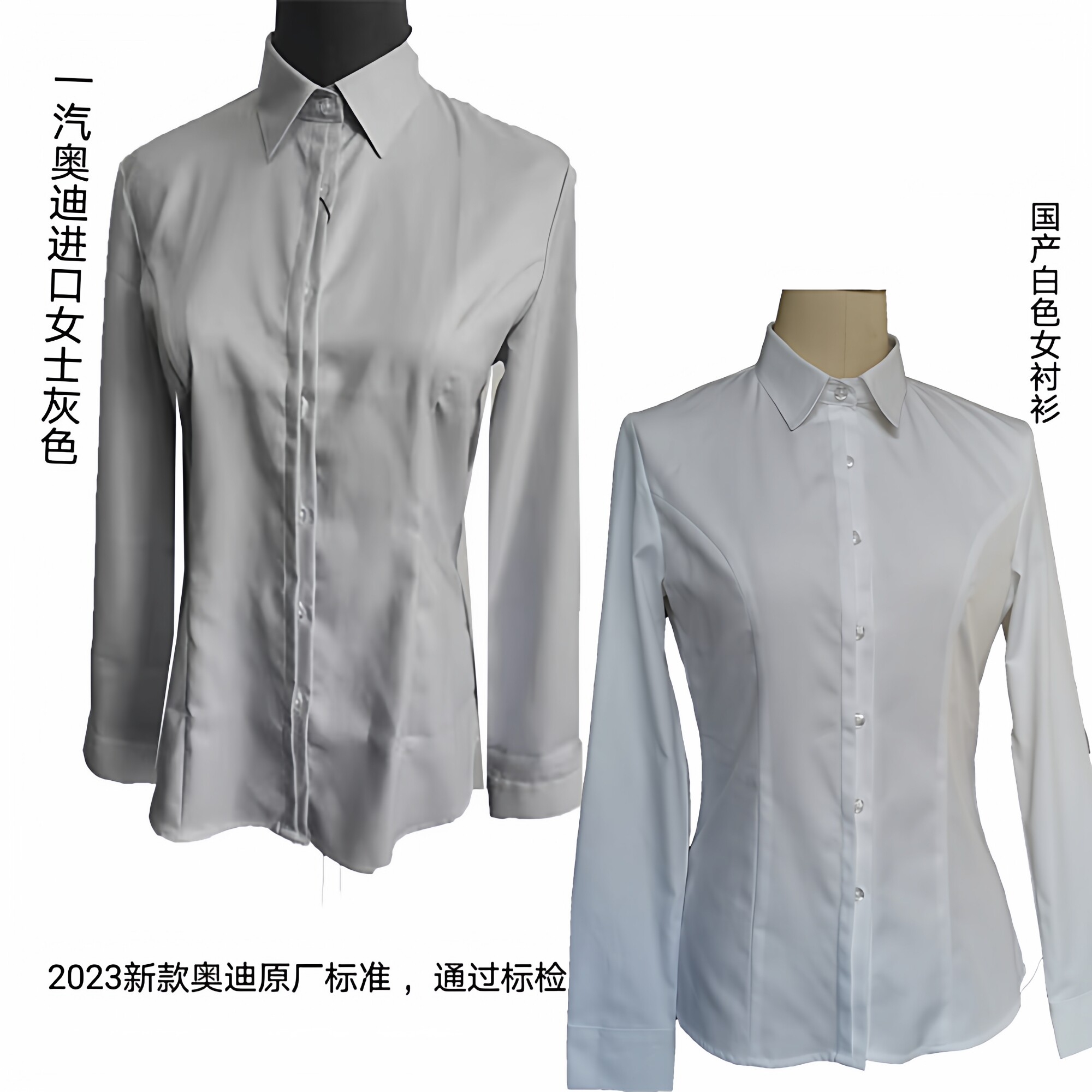 2023新款一汽奥迪进口灰色女衬衫4S店工作服女士白色衬衣长袖修身