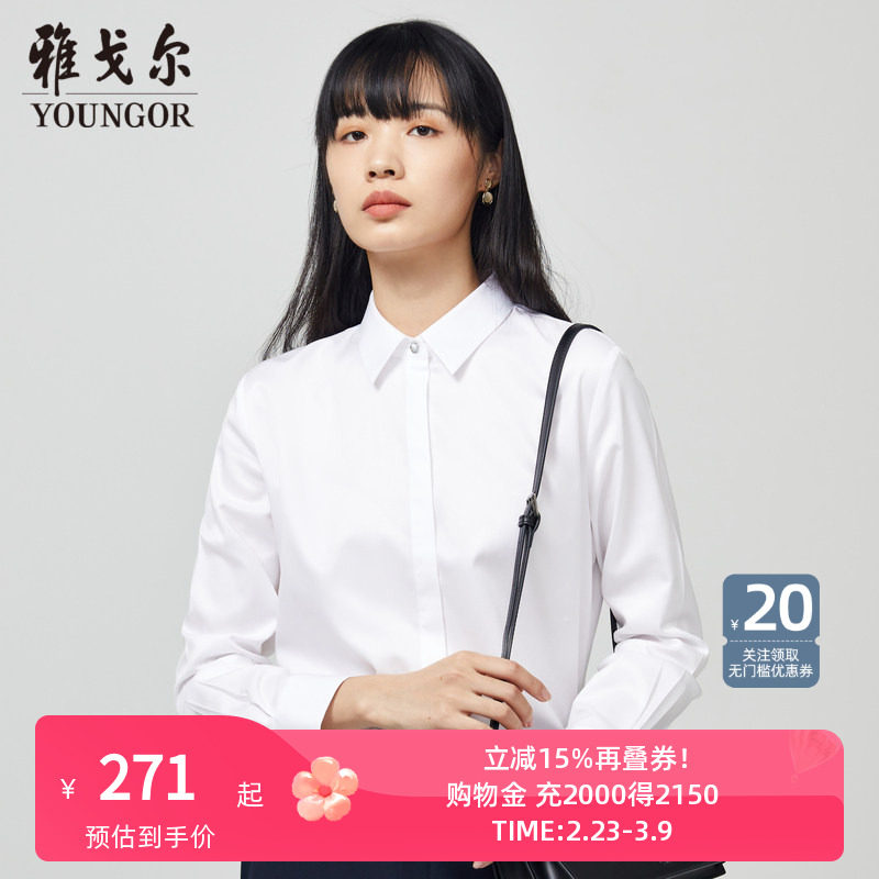 雅戈尔春秋季新款女士长袖衬衫官方商务免烫上班工作服白衬衣1718