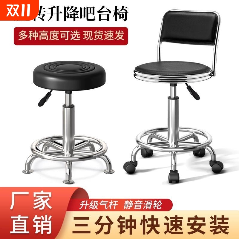 吧台椅升降靠背圆凳带轮转椅美容凳旋转家用现代简约高脚凳子移动