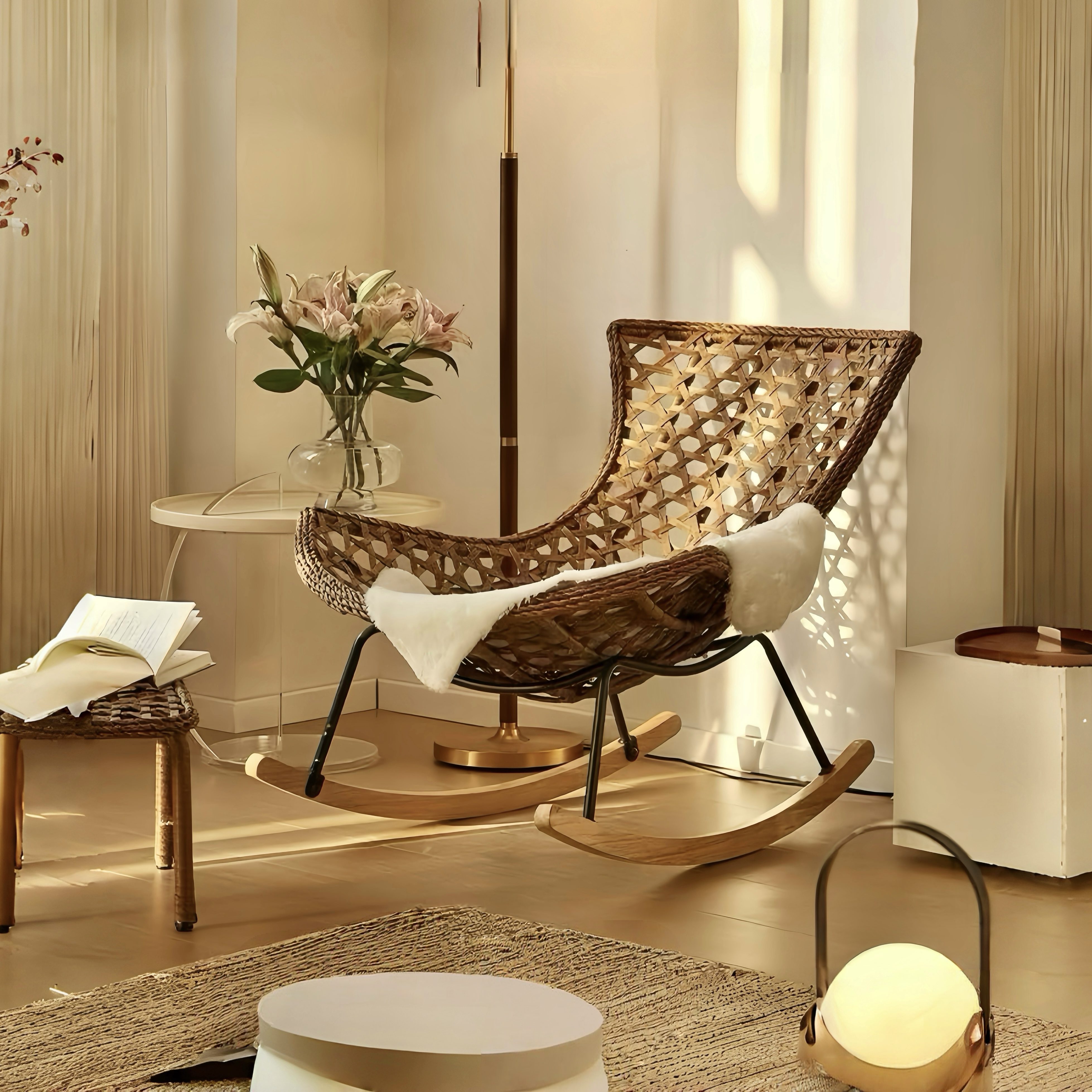 北欧网红客厅塑料阳台休闲摇椅成人简约家用躺椅网红镂空摇摇椅子