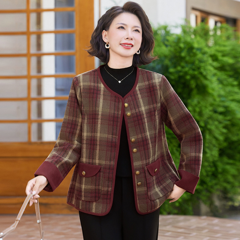 - 妈妈装呢子大衣中长款