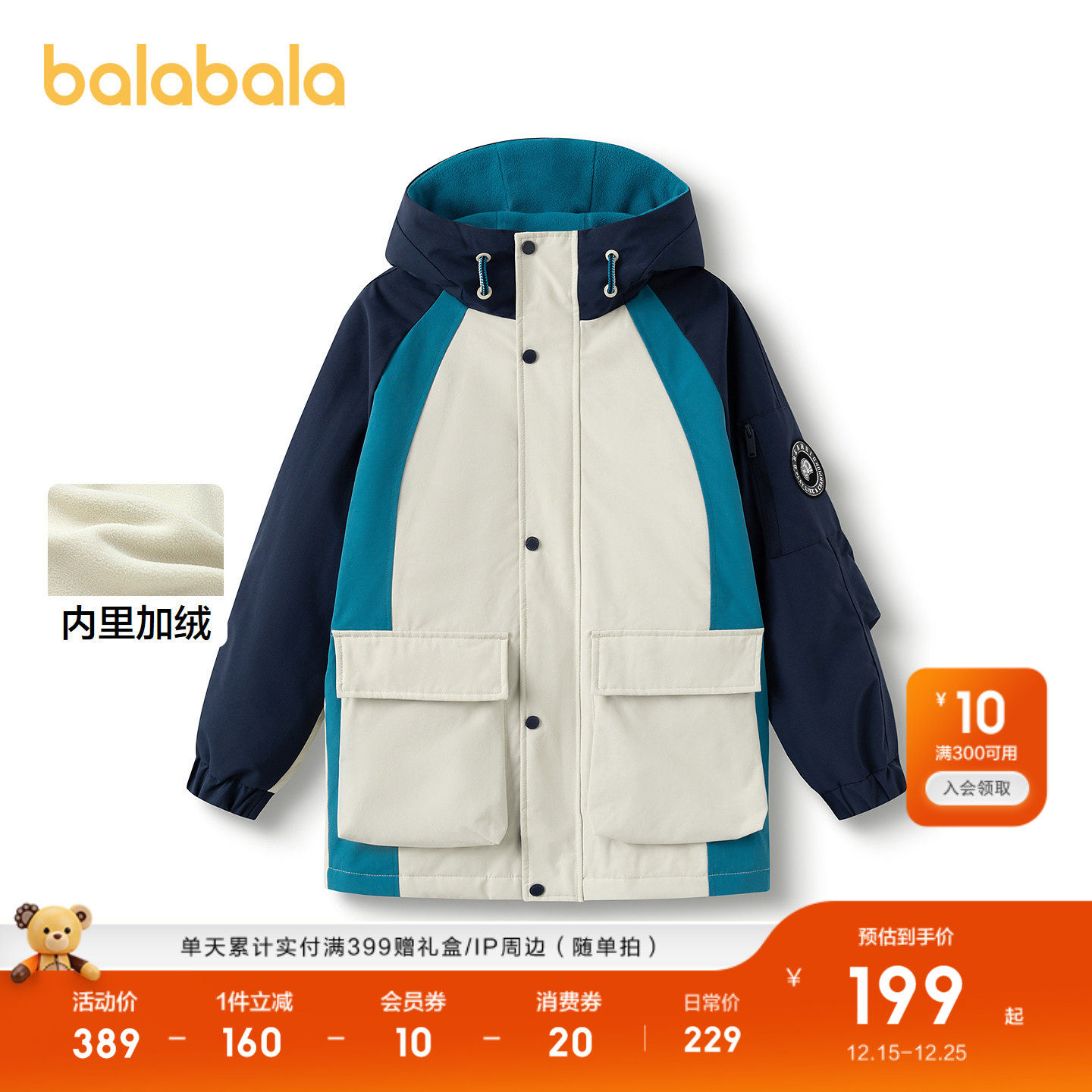 巴拉巴拉男童棉服儿童中大童外套童装秋冬加绒保暖防风防泼水透湿