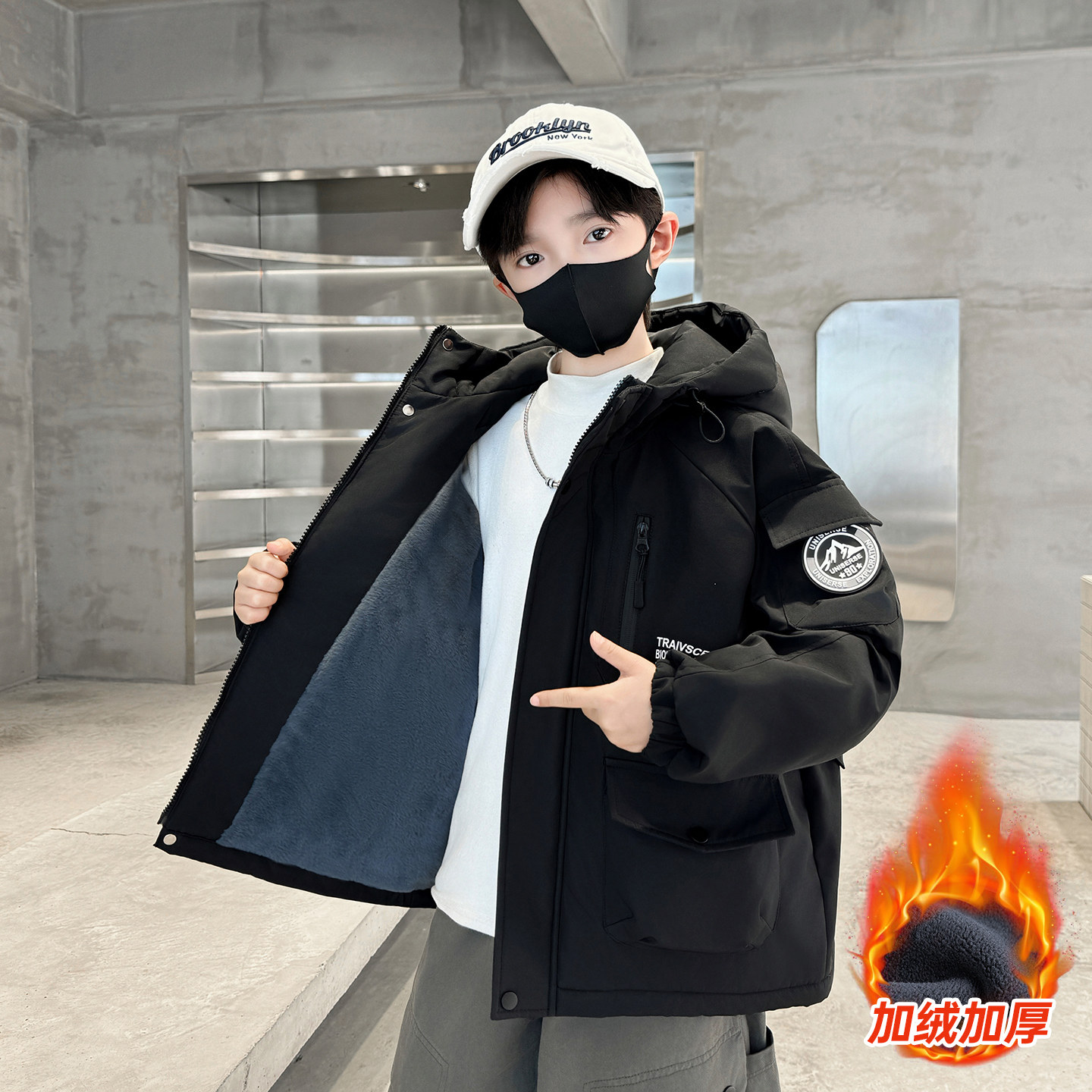 男童冬季加绒外套2025新款中大儿童棉衣秋冬款加厚保暖潮装派克服