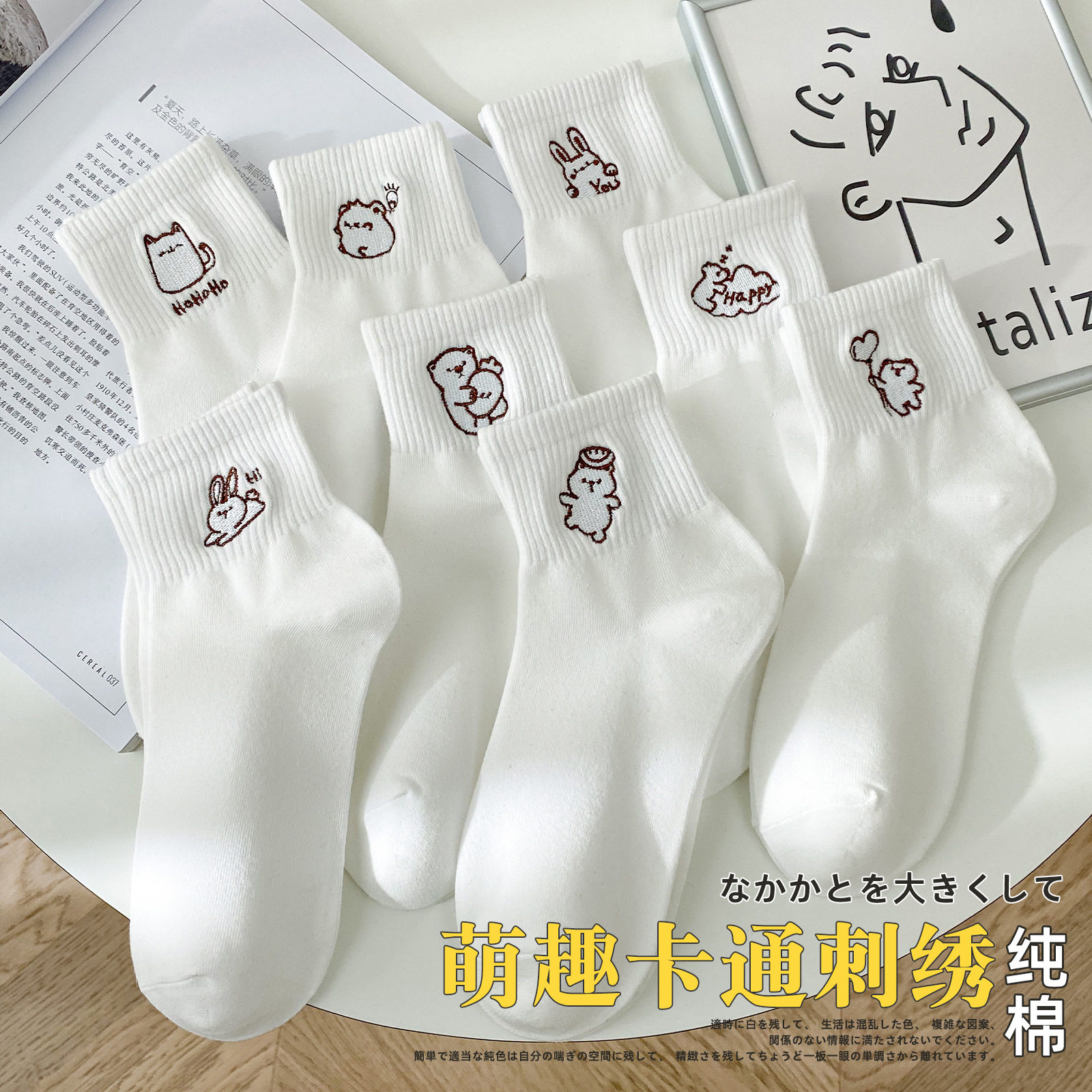 纯棉袜子女四季款短袜卡通可爱刺绣白色百搭棉袜诸暨袜子女袜批发