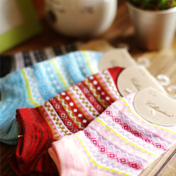 七彩店铺 印度纹 纯棉女袜子短袜透气个性民族风夏春秋四季棉袜
