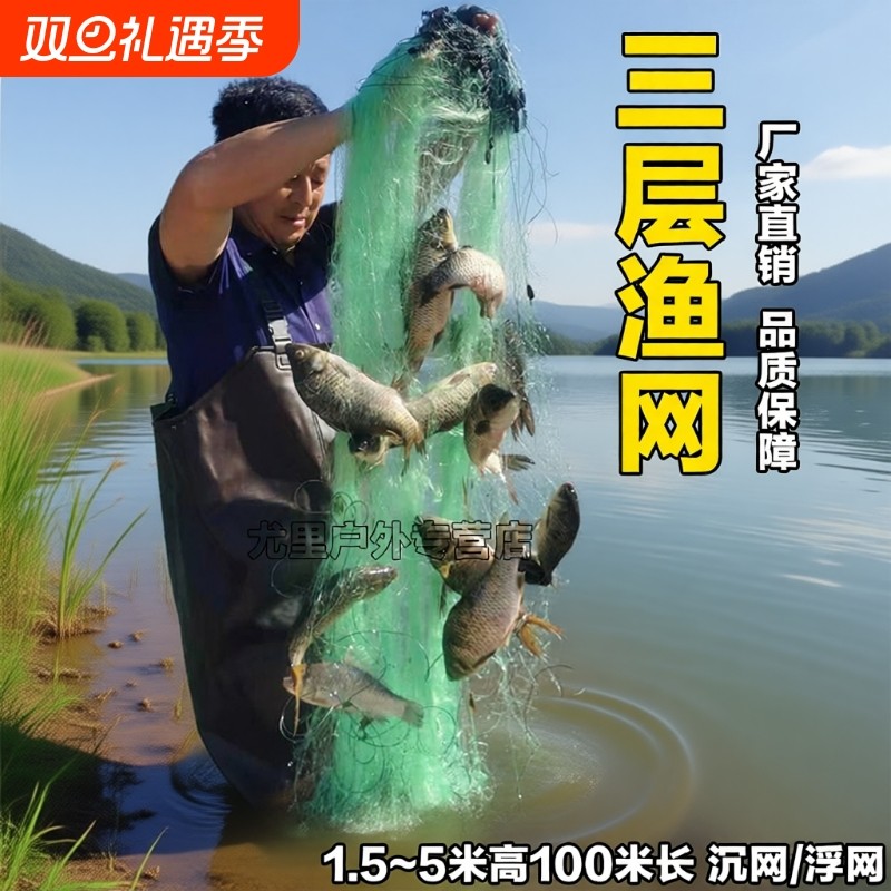 渔网丝网粘网三层鱼网沉网加粗加重捕鱼网白条网鱼网大全沾100米