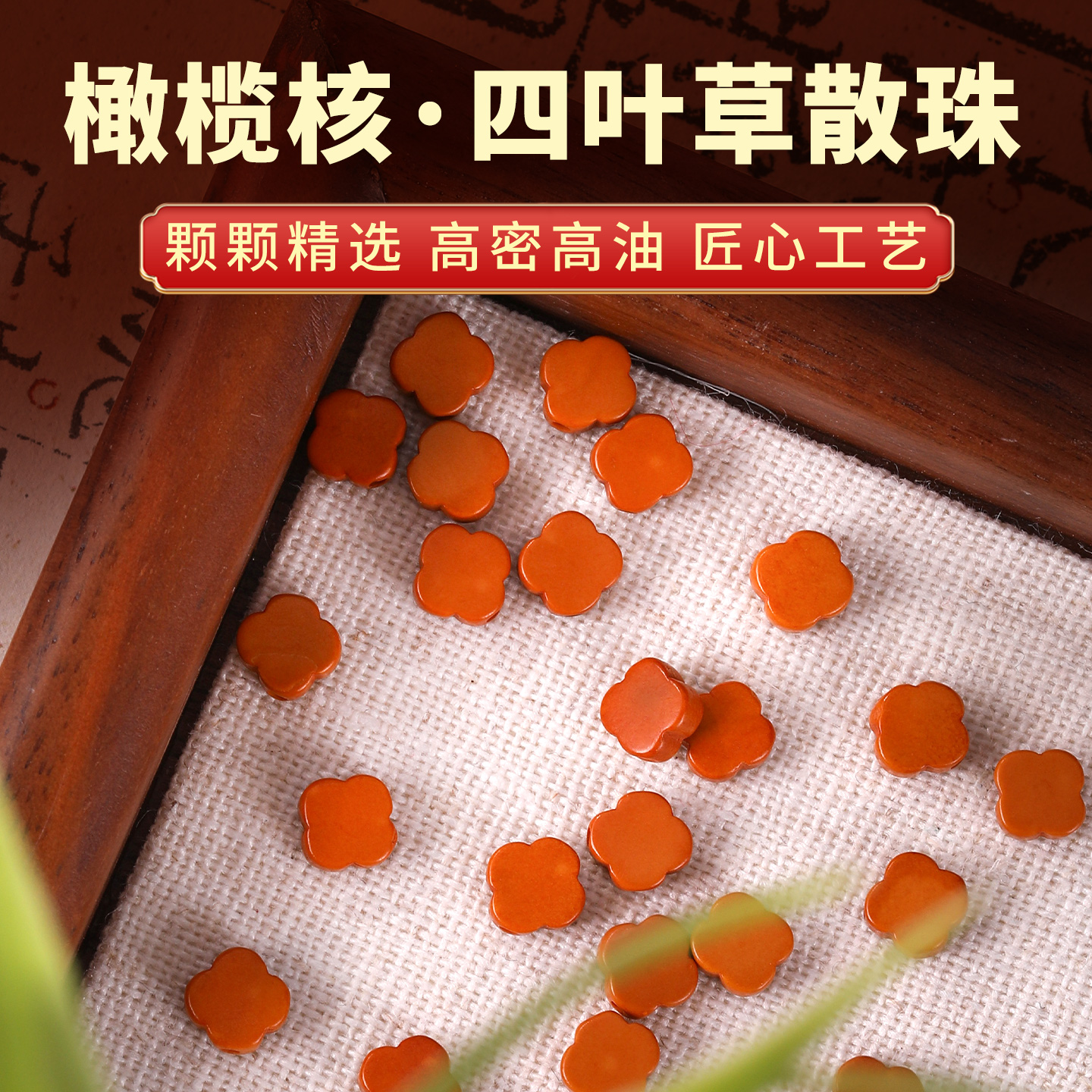 天然橄榄核雕刻四叶草手串散珠高油手链串珠珠子diy材料文玩配饰