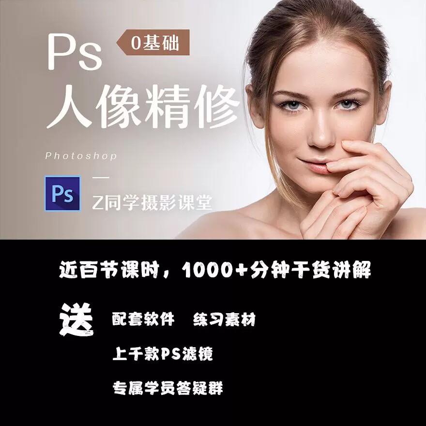 Ps教程零基础photoshop视频课程美工平面设计人像修图抠调色海报