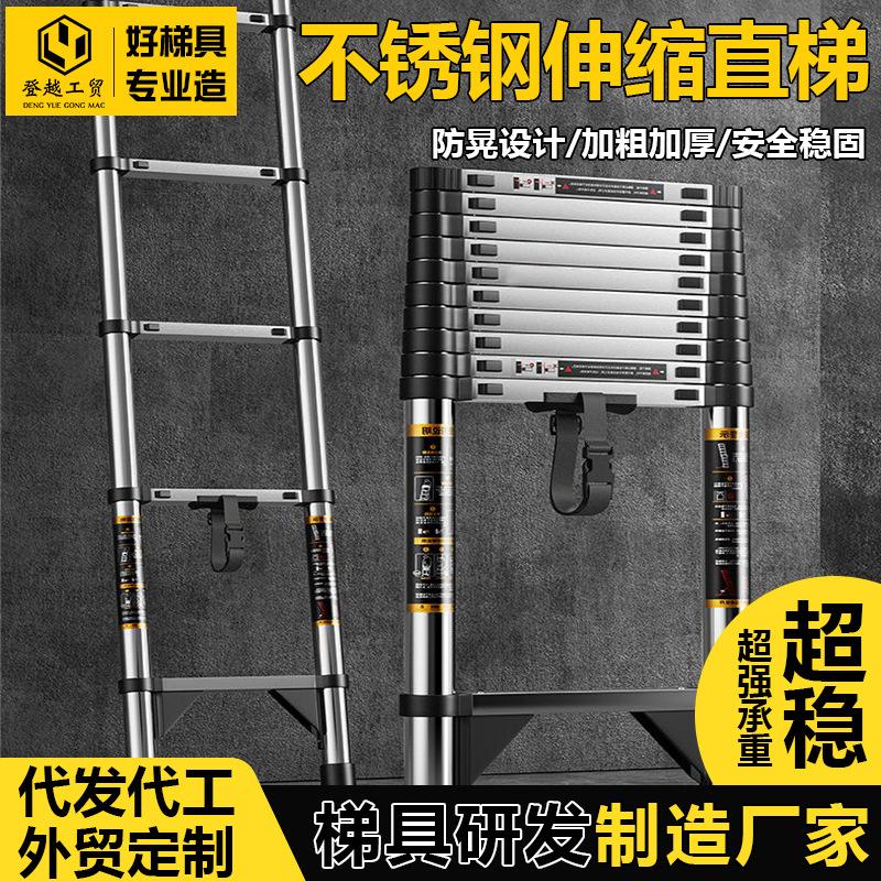 不锈钢伸缩梯子工程梯加厚直梯爬梯人字梯阁楼家用便携折叠升降梯