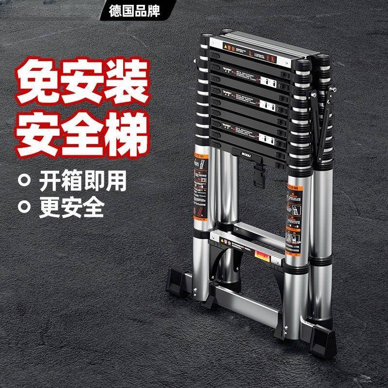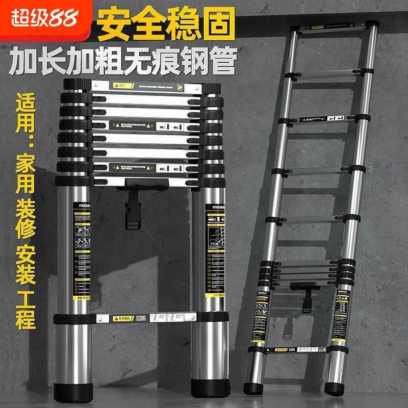 镁多力伸缩梯子家用加厚不锈钢直梯便携升降楼梯折叠铝合金人字梯