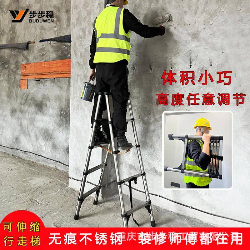 不锈钢直梯多功能铝合金工程升降人字梯伸缩梯子家用折叠便携楼梯