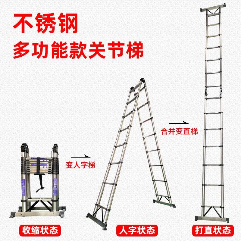 畅俣达不锈钢伸缩梯子多功能家用人字梯便携折叠梯竹节梯升降步梯