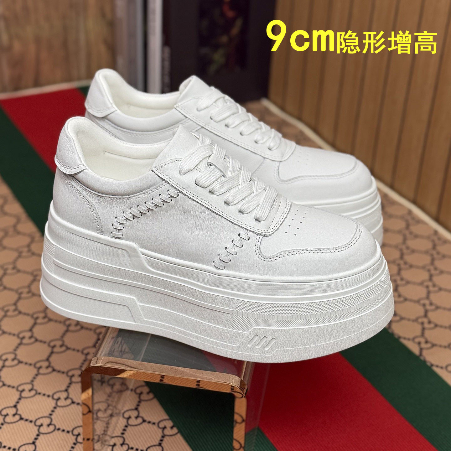 真皮内增高8-10cm松糕厚底小白鞋韩版休闲小个子女鞋2026新款春款