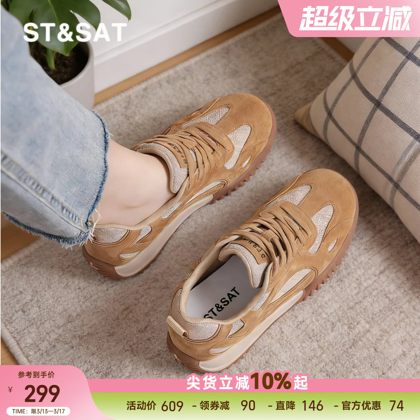 星期六真皮内增高德训鞋女士春季新款厚底阿甘老爹跑步休闲运动鞋