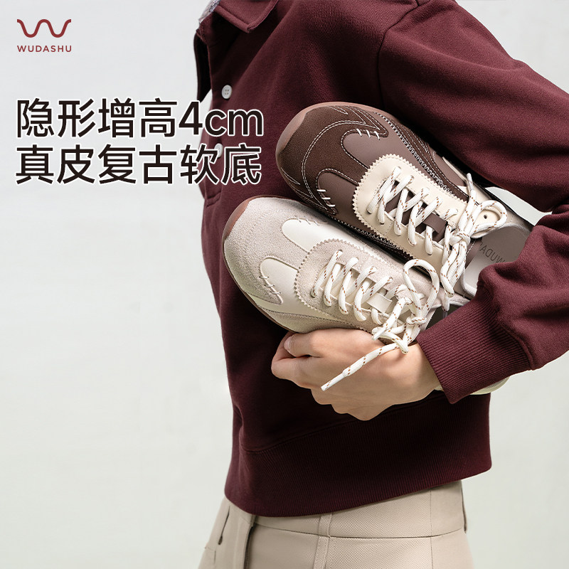 真皮~骄屿内增高芭蕾德训鞋女新款复古百搭休闲阿甘鞋厚底运动鞋