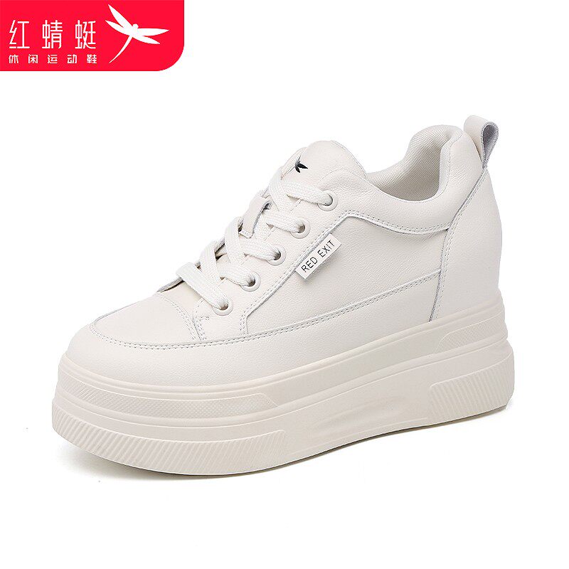 红蜻蜓真皮内增高10cm小个子厚底小白鞋女鞋春秋款皮面透气网面轻