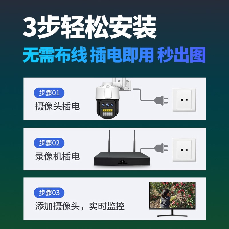 无线监控设备套装系统p一体录像机监控器高清室外家用商用摄像头