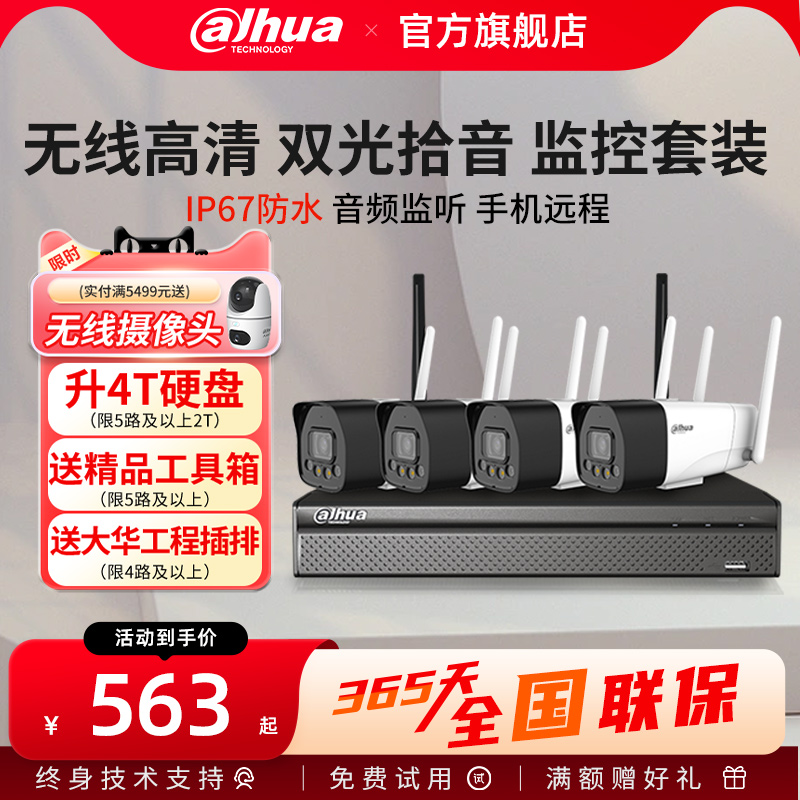 大华wifi无线监控器设备高清套装远程手机全彩双光室外摄像头