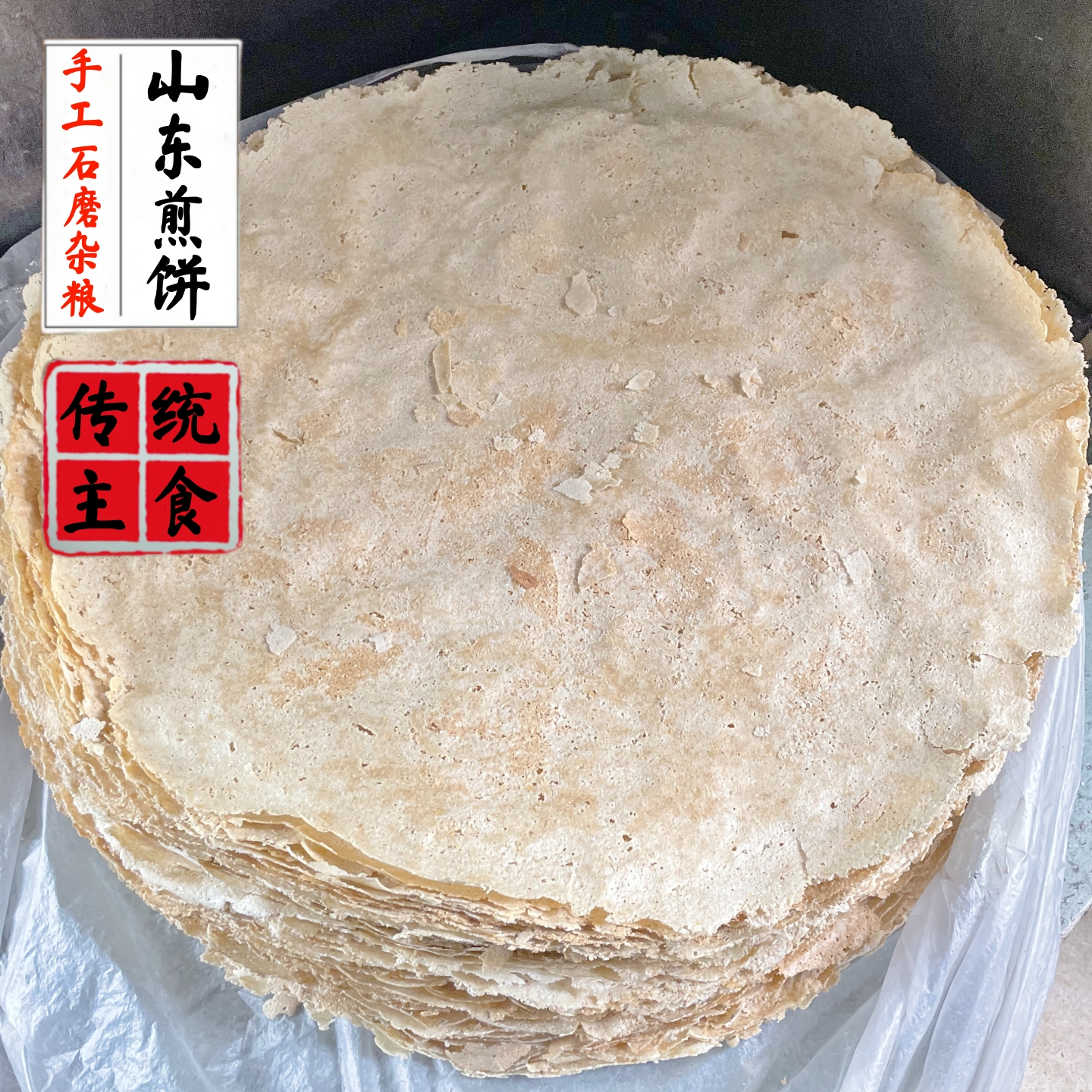 枣庄手工煎饼山东大煎饼特产杂粮卷煎饼传统石磨鏊子粗粮煎饼即食