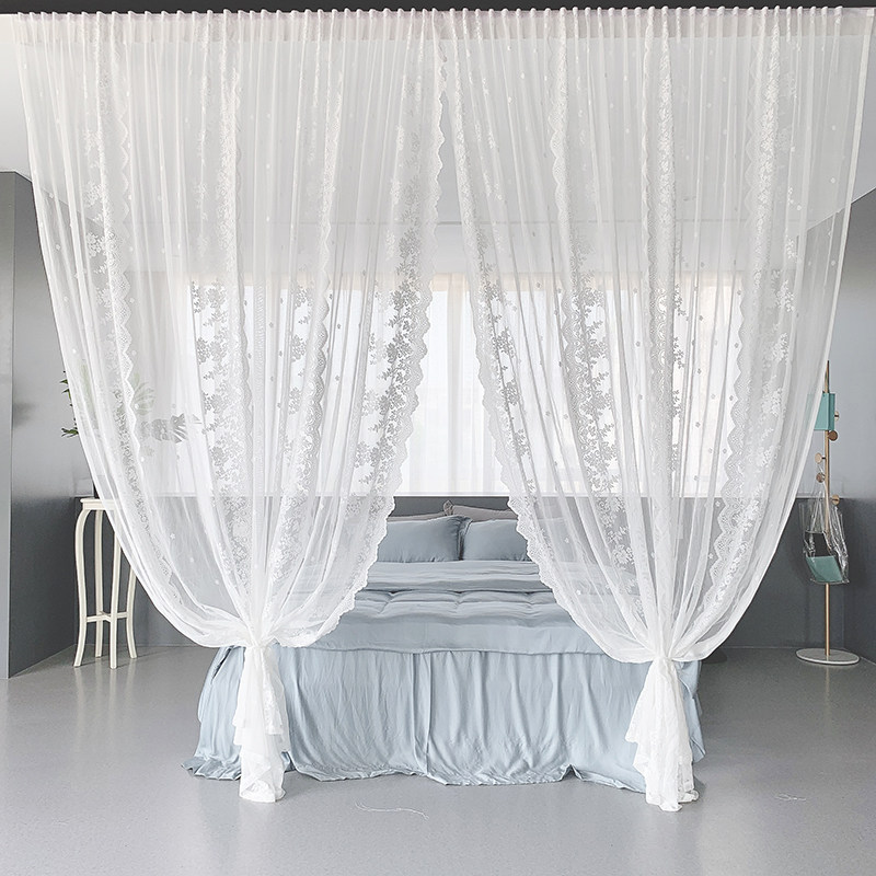ins风窗帘成品白色纱帘美式田园蕾丝绣花纱韩式卧室飘窗纱帘隔断