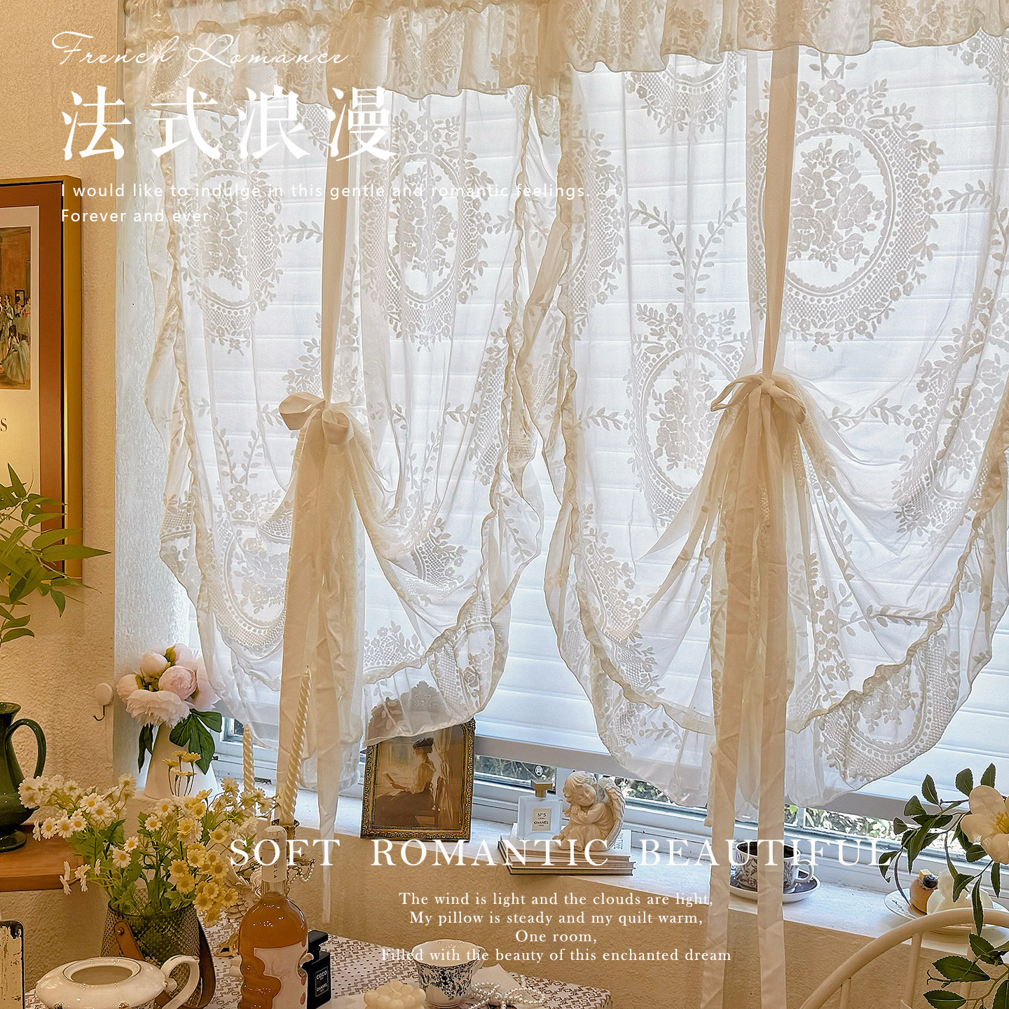 法式浪漫洛可可蕾丝浮雕纱帘罗马升降帘提拉帘韩式隔断半帘气球帘