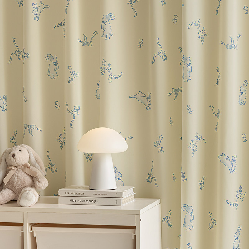 法欧雅奶油风奶黄色蝴蝶结兔子纱帘防刮透光不透人韩式卡通儿童房