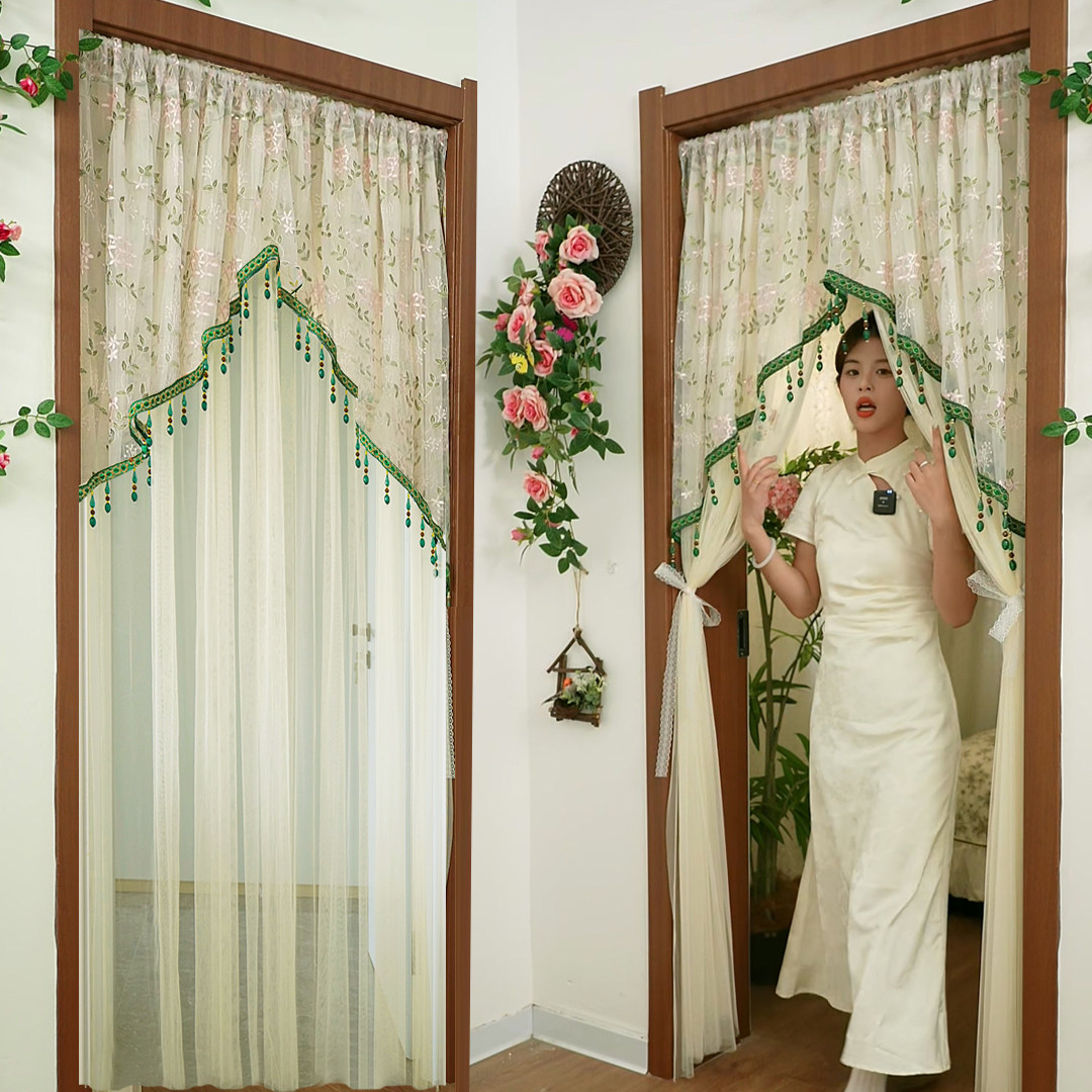 田园风吊坠三角门帘卧室装饰防蚊纱帘蕾丝绣花韩式网红纱门帘隔断