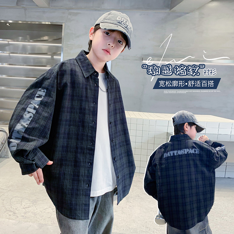 男童格子衬衫外套秋装2025新款儿童大童痞帅长袖衬衣12初中生15岁