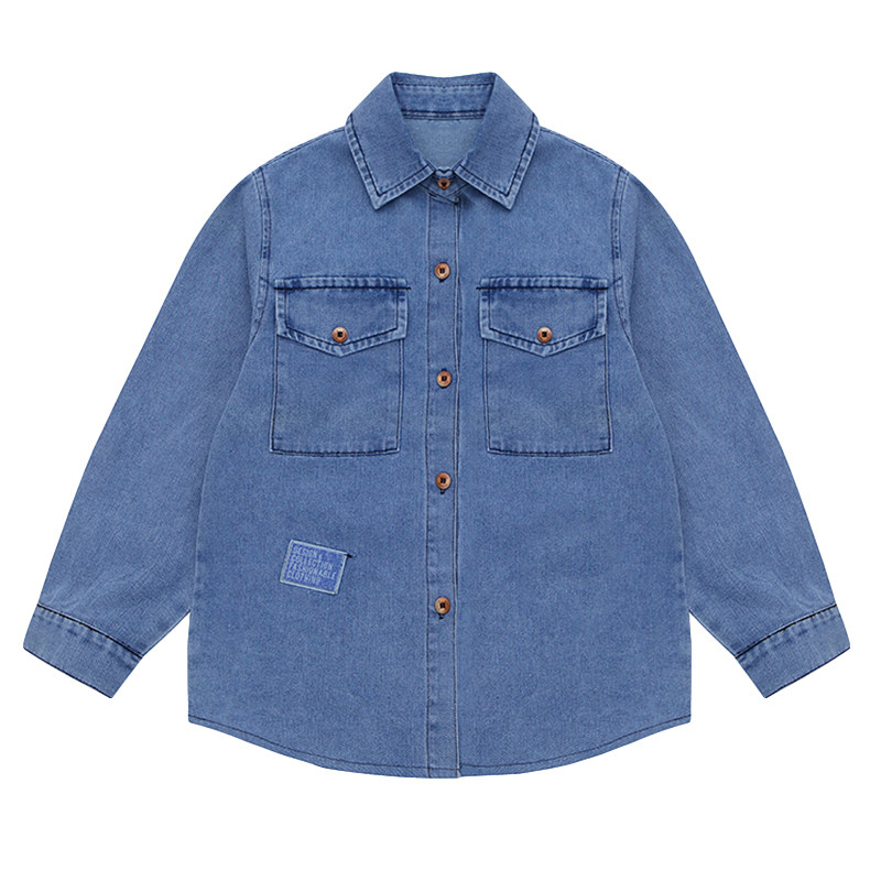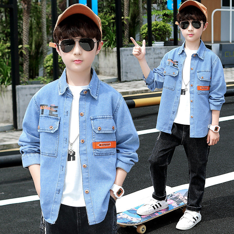 男童衬衫牛仔长袖衬衣2023新款春秋薄款外套10中大童12儿童装15岁