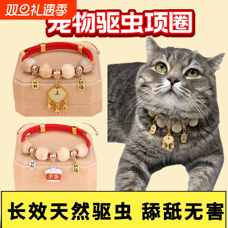 宠物项圈驱虫天然香樟木狗狗除跳蚤虱子防虫猫咪铃铛无声有声猫猫