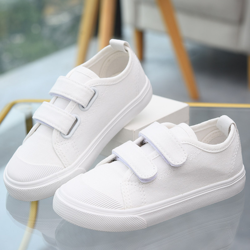 儿童小白鞋女童白布鞋男童帆布鞋小学生白色球鞋幼儿园室内运动鞋
