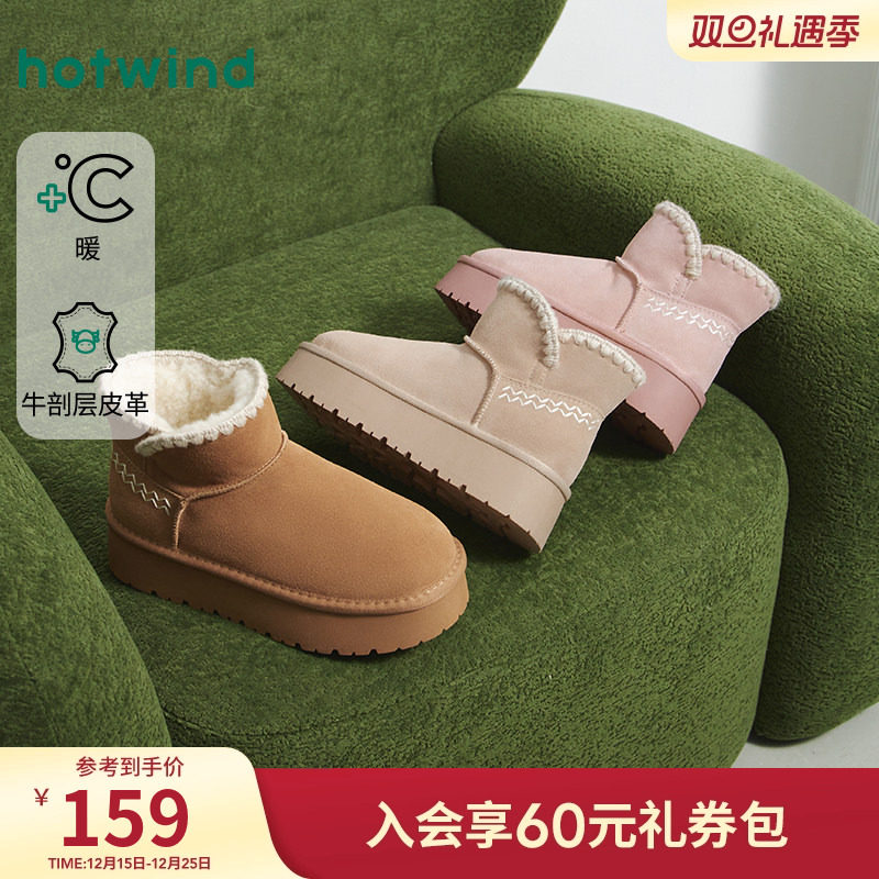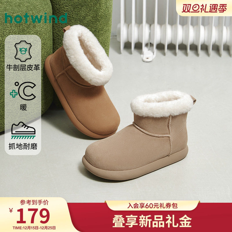 大东雪地靴女鞋2025冬季新款休闲风中跟平底套脚圆头短靴D0217H
