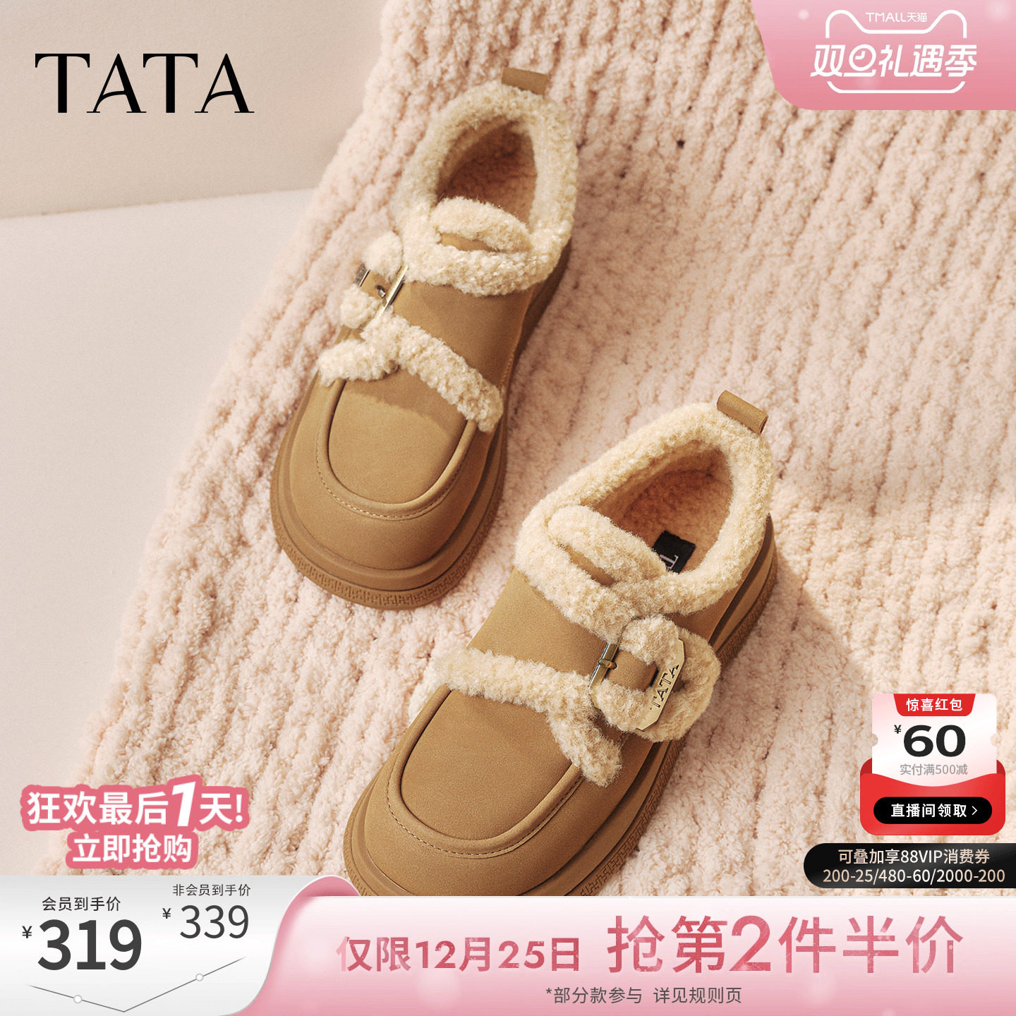 TATA他她复古厚底毛毛鞋女鞋加绒保暖单鞋棉鞋雪地靴短靴春新款
