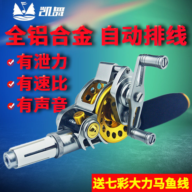 全金属50/60型带速比飞钓轮双色V型槽中通前打渔线轮带协力筏钓轮