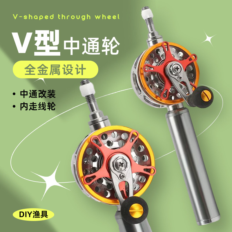 v型槽中通轮DIY手竿改装内L走线中通竿轮 前打筏轮渔线轮鱼具配