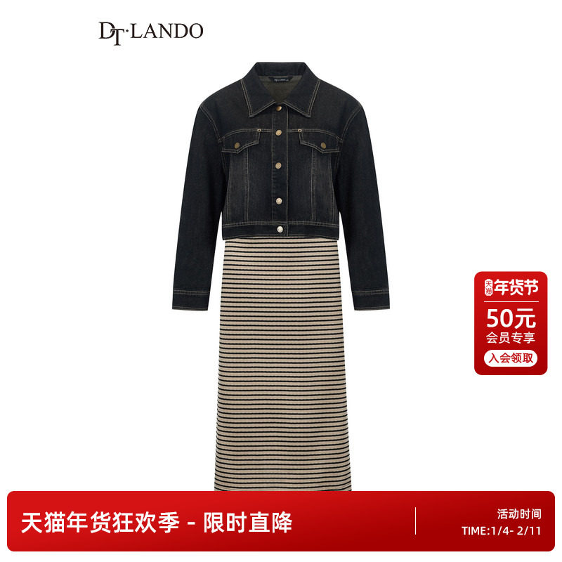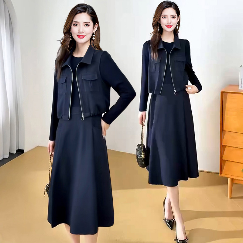 2025新款春秋款时尚气质套装裙女翻领马甲长袖打底裙两件套连衣裙