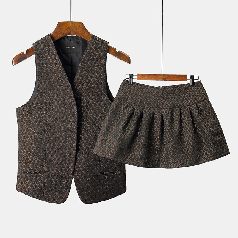 深圳南油欧货小香风套装秋款高端优雅时尚马甲上衣半身裙丝巾套装