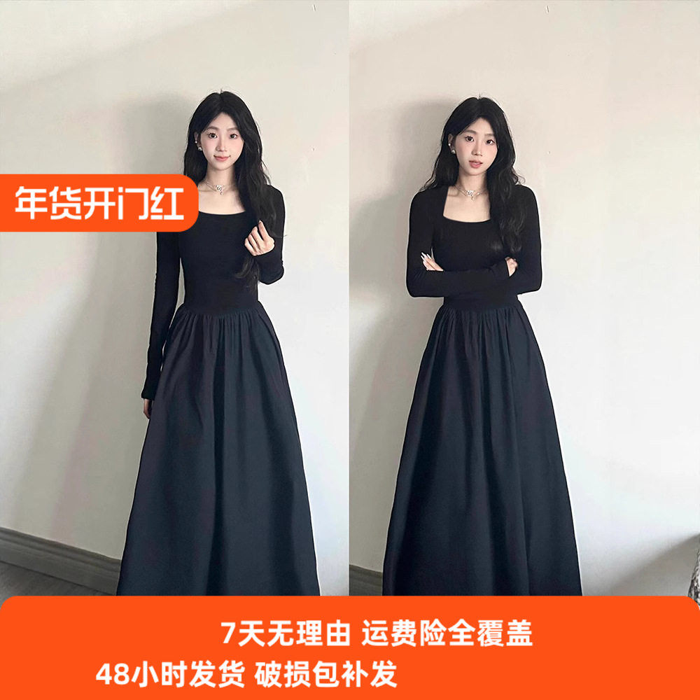 秋季赫本风黑色连衣裙女裙子套装内搭长裙穿搭2025新款秋款女装