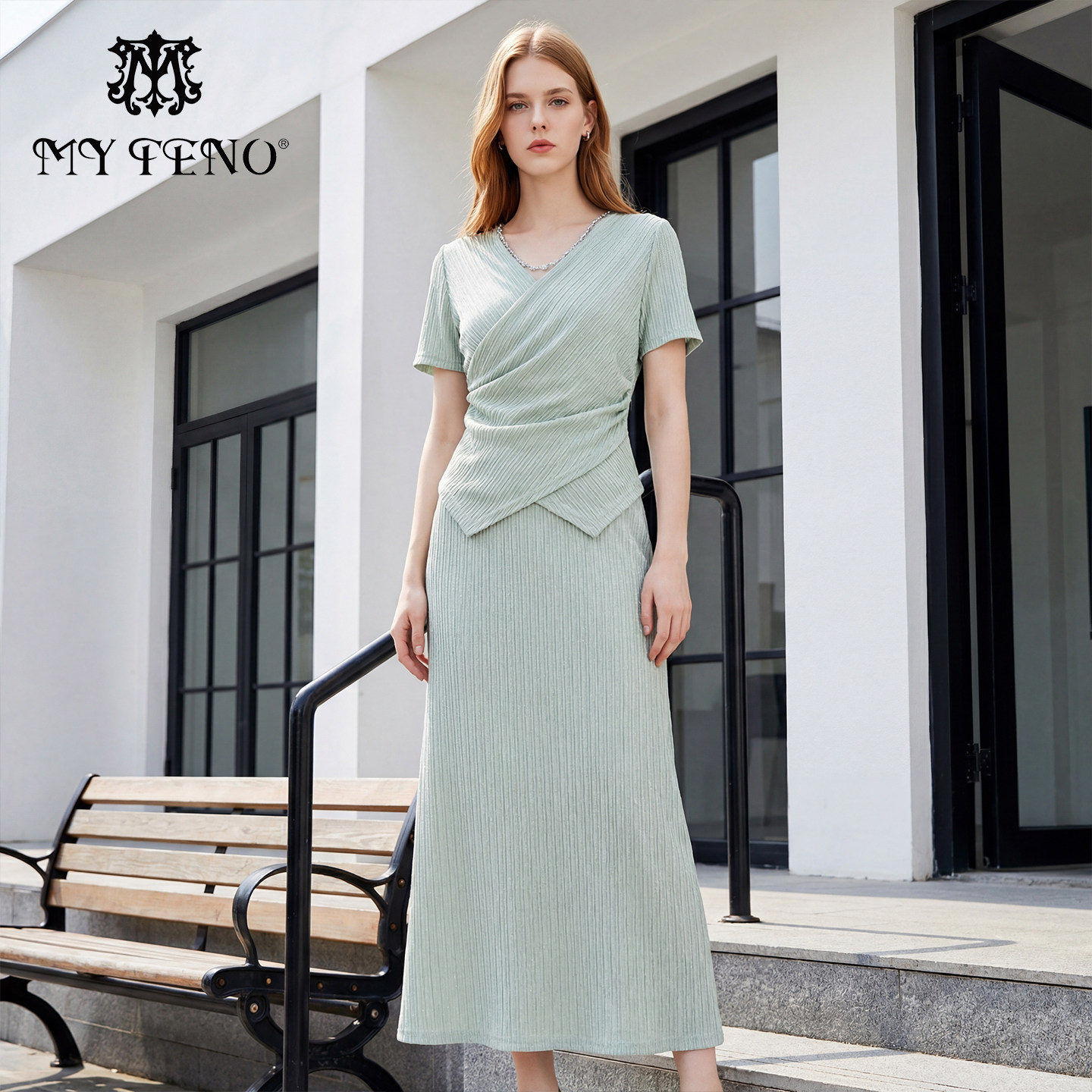 大码女装不规则设计感上衣女裙套装2025秋款胖mm针织两件套NT1271