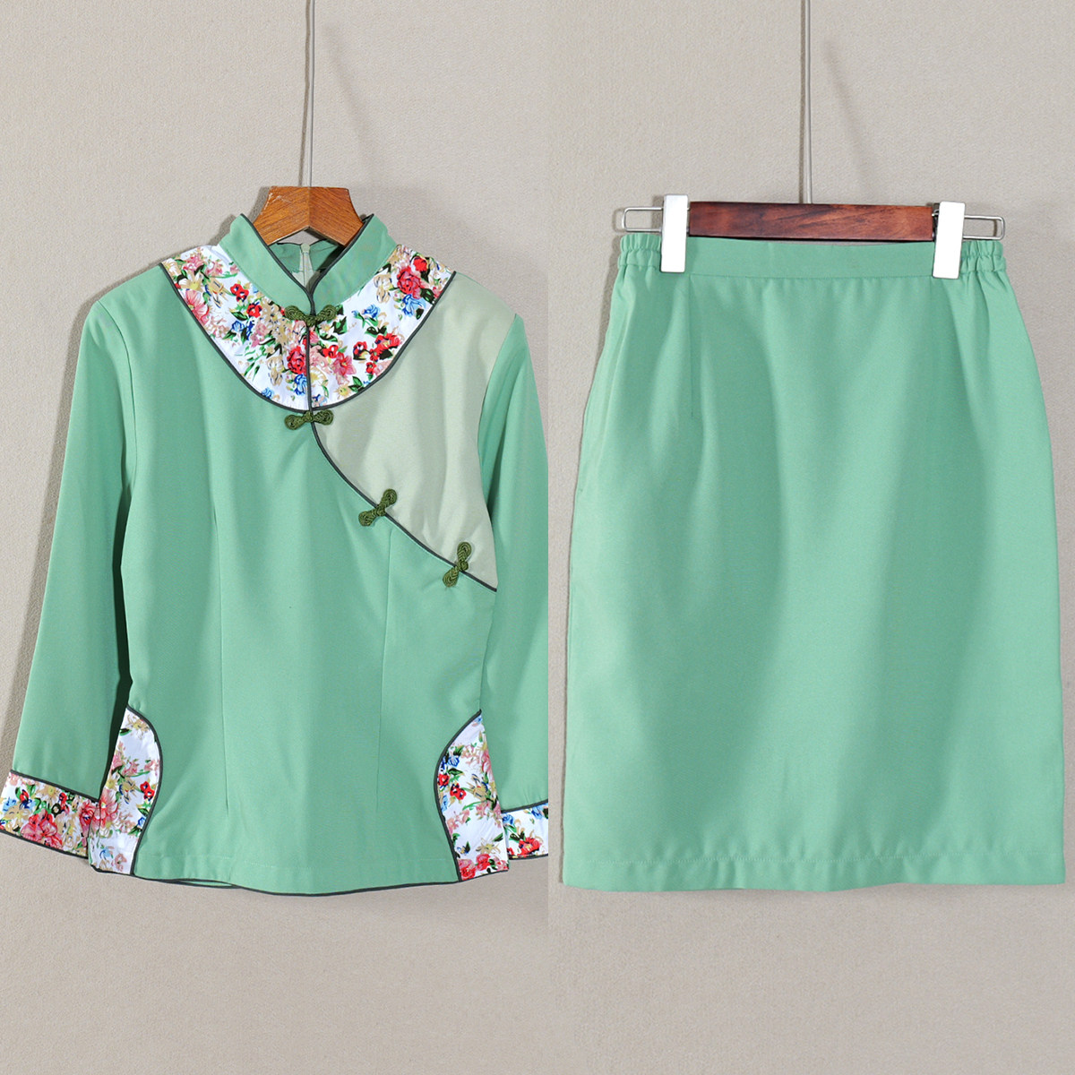 XYD71728显瘦高级翻领拉链职业上衣半身裙大码女装秋款显瘦套装