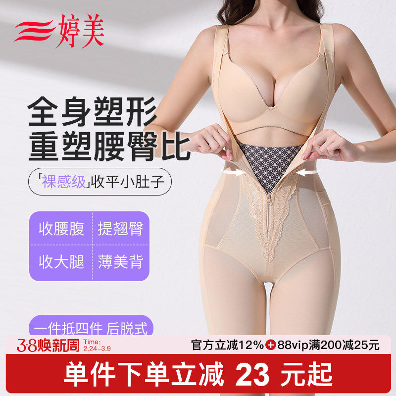 婷美拉链款收腹连体塑身衣强力收腹收小肚子提臀束腰美体塑形内衣