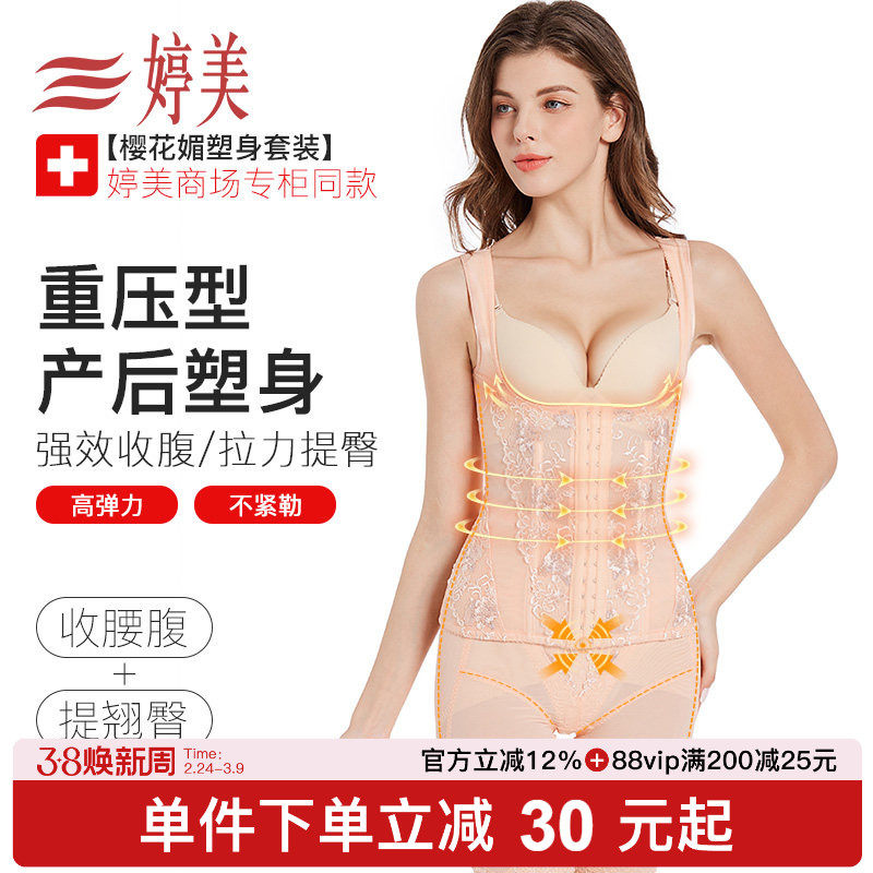 【专柜同款】婷美塑身衣樱花媚正品收腹收腰美体显瘦重压内衣套装
