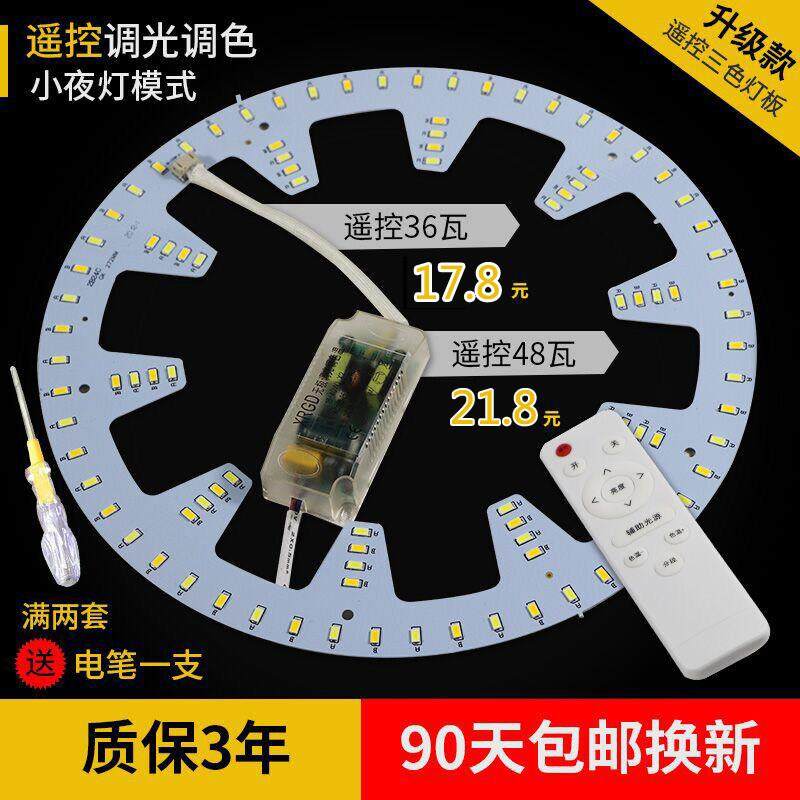 LED吸顶灯改造灯板圆形灯盘三色遥控调光灯芯灯带灯泡贴片光源