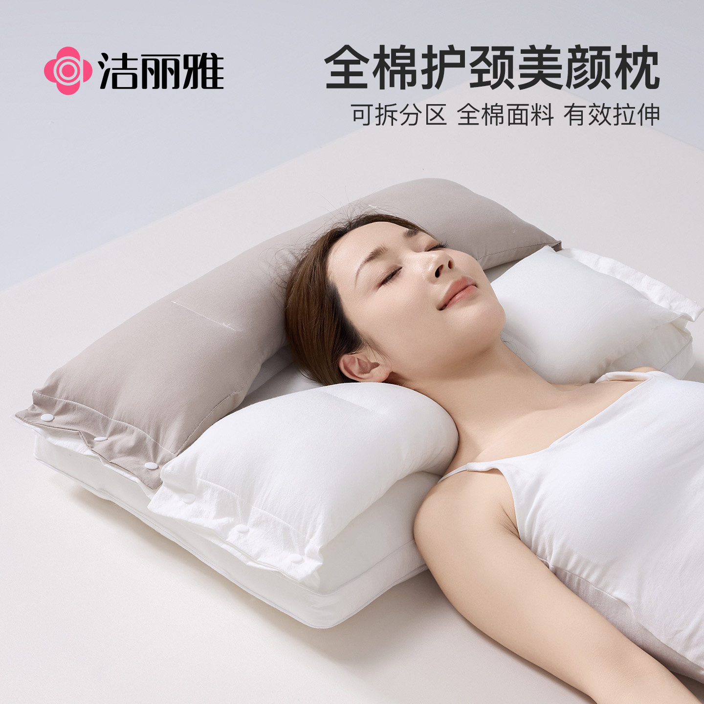 洁丽雅全棉护颈枕枕头护耳护颈椎助睡眠枕头颈椎专用侧睡枕防颈纹