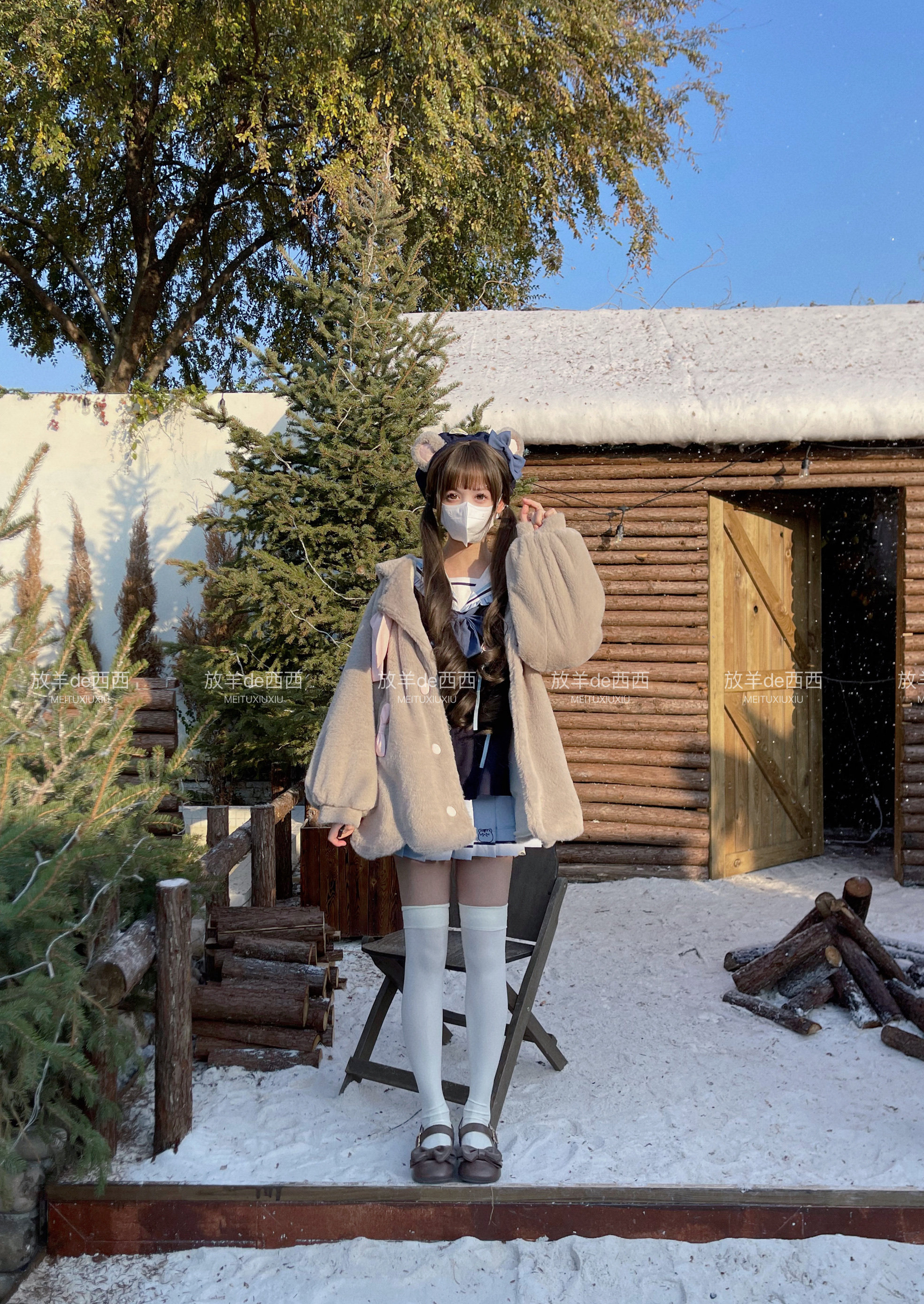 现货-冬日限定灰色 原创鼠鼠毛绒大衣 可爱日系软妹外套厚实保暖